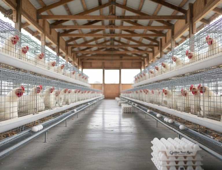 At GoldenNest Agro, we specialize in premium layer poultry farming, delivering fresh, high-quality eggs with care.